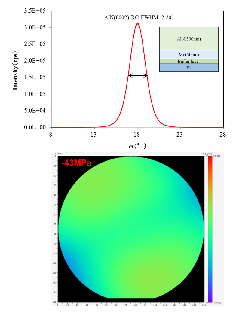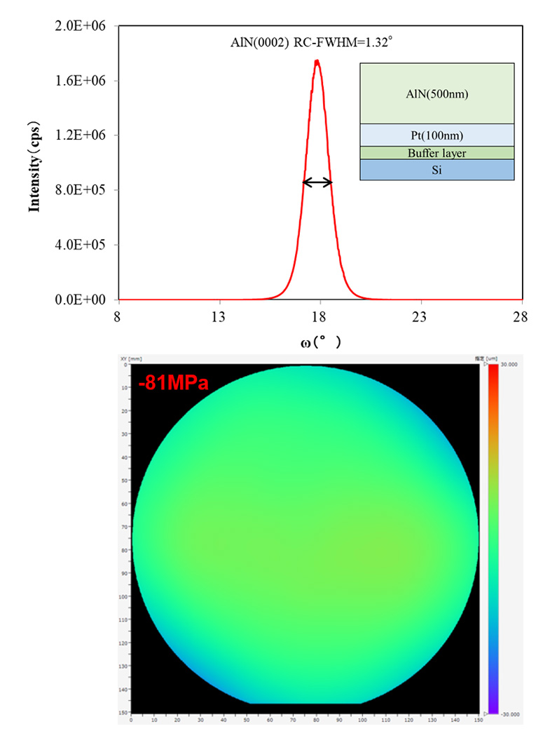 Siウエハ上に応力100MPa以下のAlN膜を形成可能